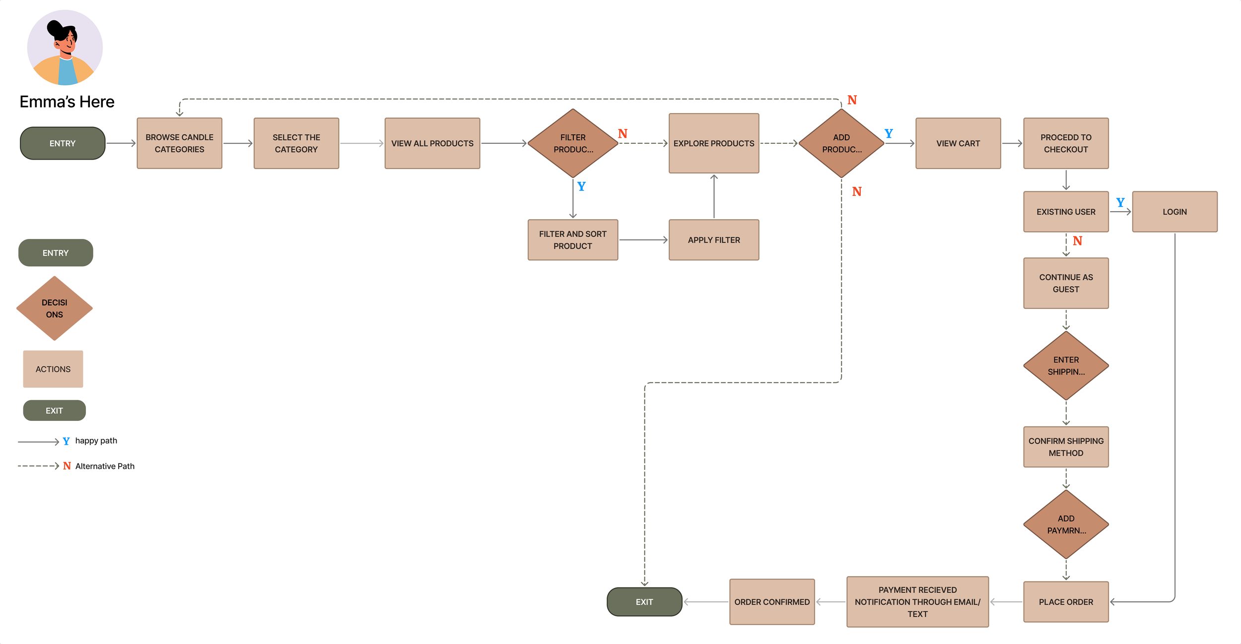 I conducted user interviews and usability testing on the existing website to gain insights into shopping habits and understand what users prioritize when browsing a candle website.