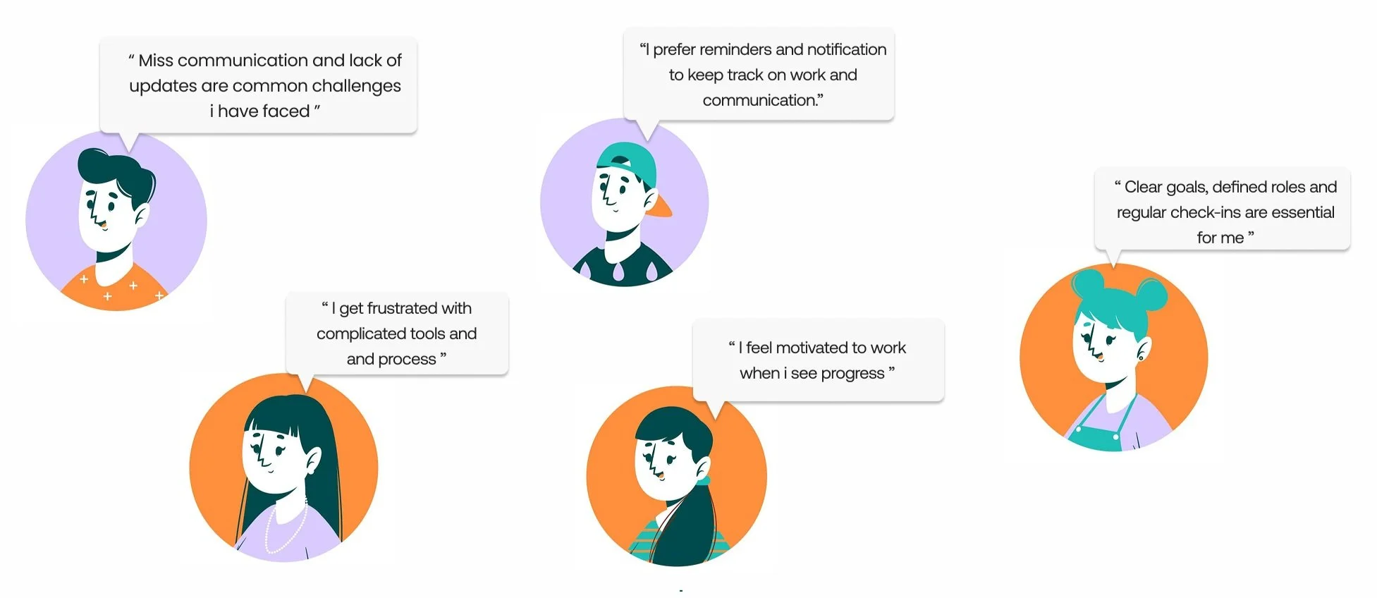 We interviewed 5 Students aged between 18- 25 to understand there individual and group working habits, challenges and pain points.